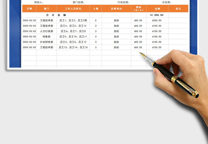 誤餐費報銷審批明細表 Array