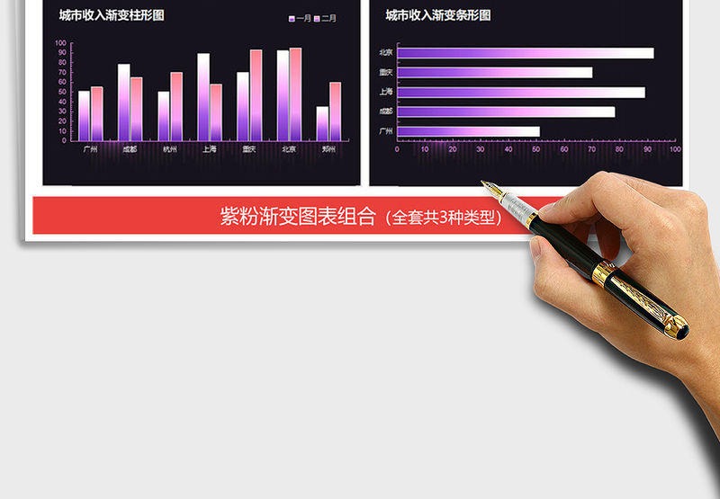 2021年紫粉數據標簽圖表 對比柱形圖條形圖報表免費下載包含