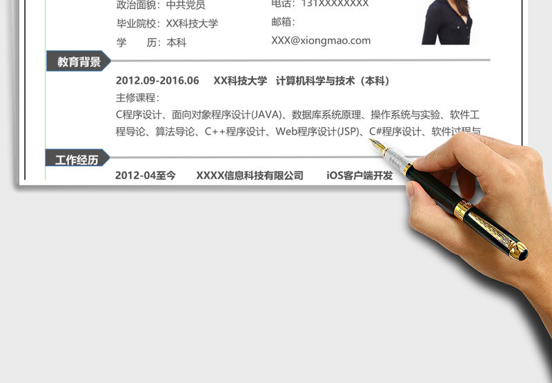 黑色炫彩電商行業Excel簡歷表格模版包含