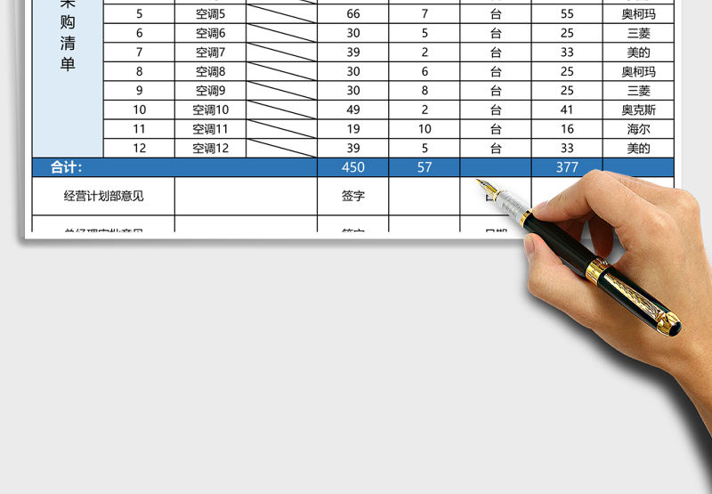 辦公用品購買申請表excel表格包含