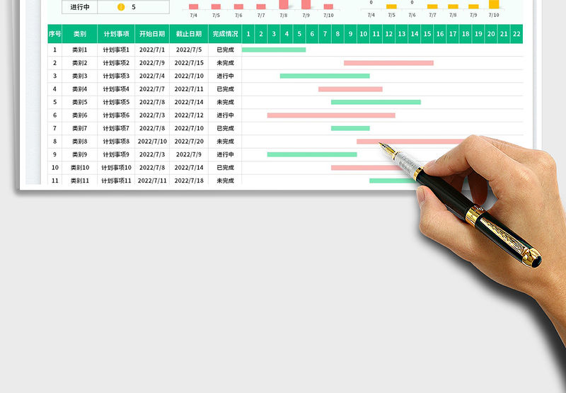 計劃進度表-項目進度甘特圖Excel模板Excel表格模板包含