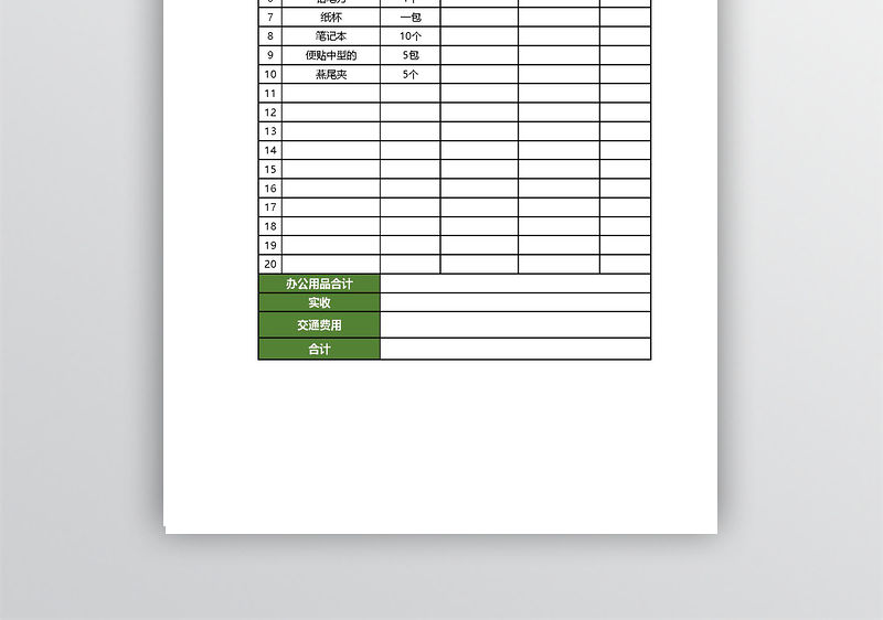 辦公用品購買記錄表excel表格模板包含