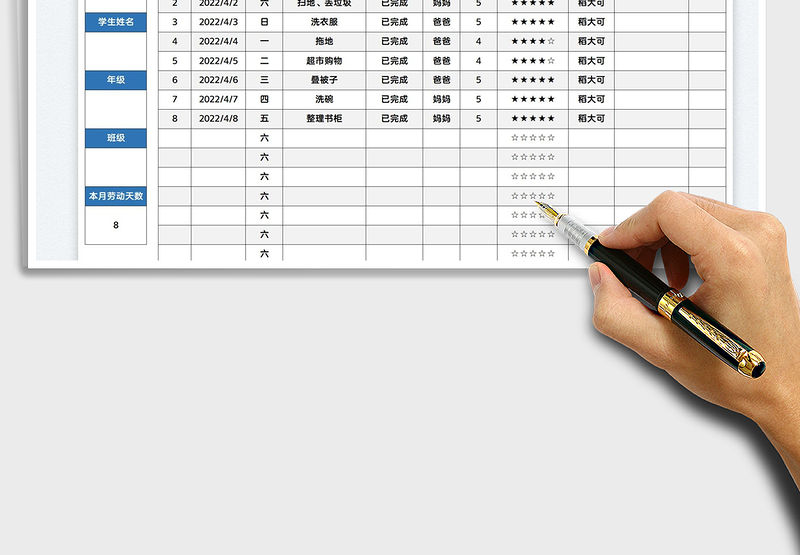 2022學生家務勞動記錄表免費下載包含