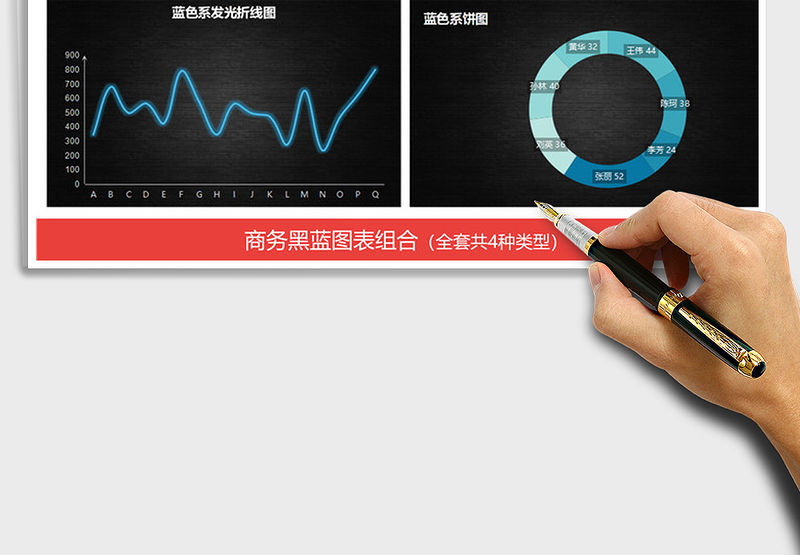 發(fā)光商務(wù)黑藍圖表柱形圖折線圖餅圖 Array