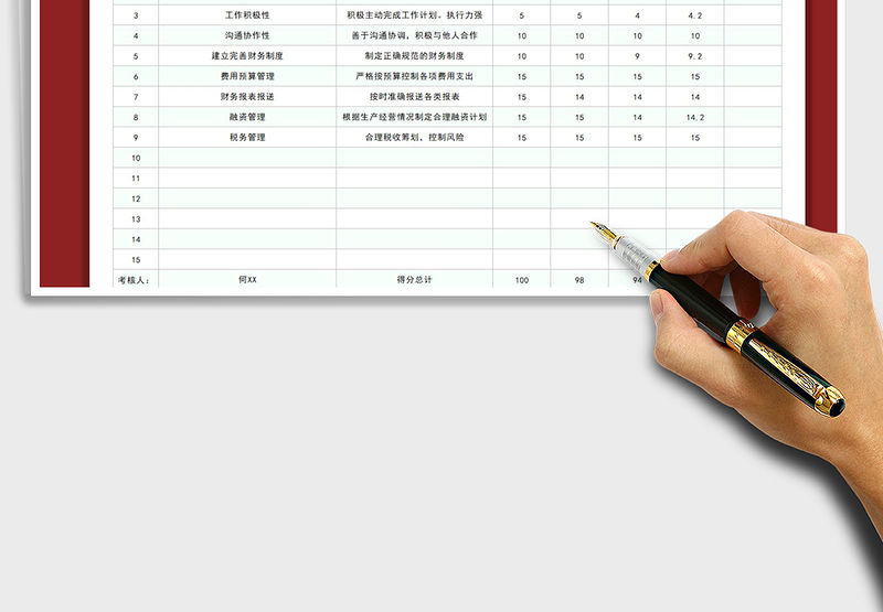 2021年財務經理績效考核表(含自動計算、等級評價、任意設置包含