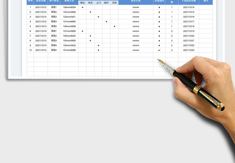 首頁 > Excel表格 > 登記表 > 2021客戶回訪記錄表免費下載.XLSX 【圖片、文字、動畫均可編輯】