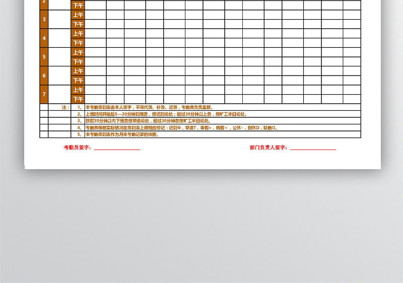 月員工考勤簽到表包含