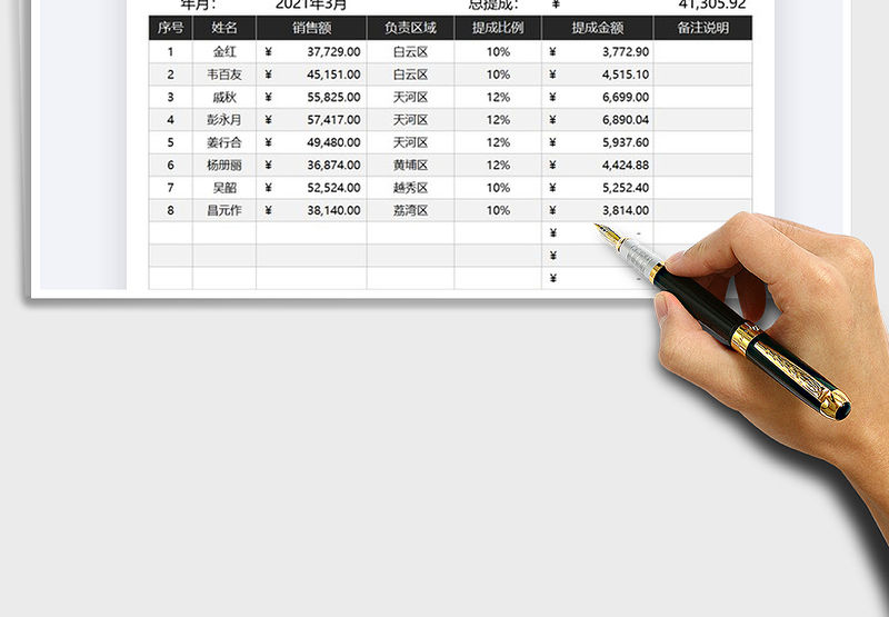 2021年銷售人員業務員薪酬統計表包含