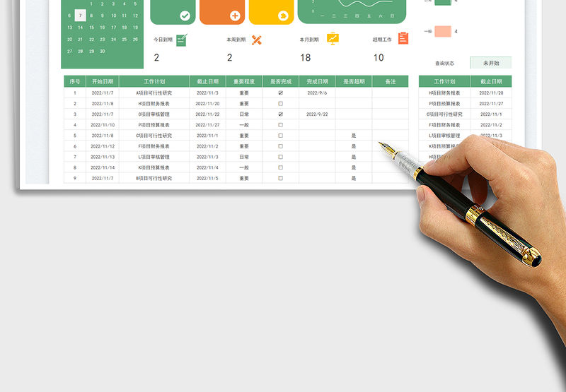 2021年日歷日程工作計劃表-計劃自動分類包含