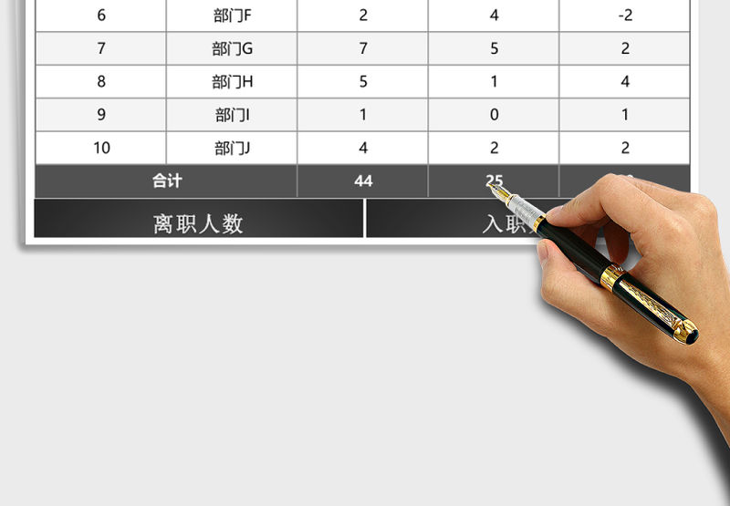 立體年度入職與離職人員統(tǒng)計excel模板