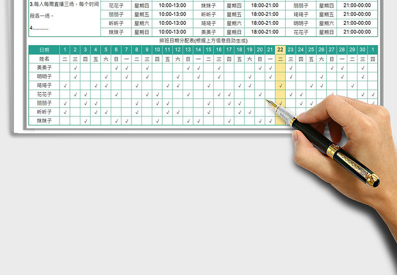 首頁 > Excel表格 > 登記表 > 2022直播排班表免費下載.XLSX 【圖片、文字、動畫均可編輯】