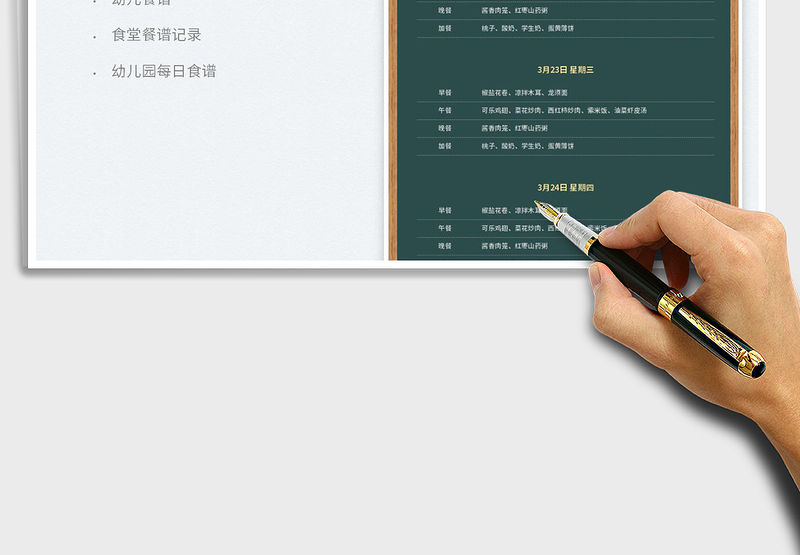 2022黑板風(fēng)格幼兒園一周食譜免費下載 Array