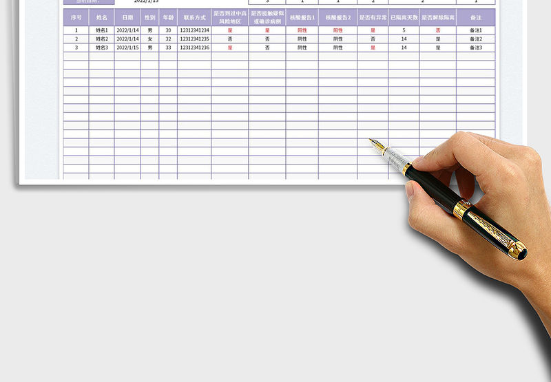 2022疫情隔離人員登記表免費下載