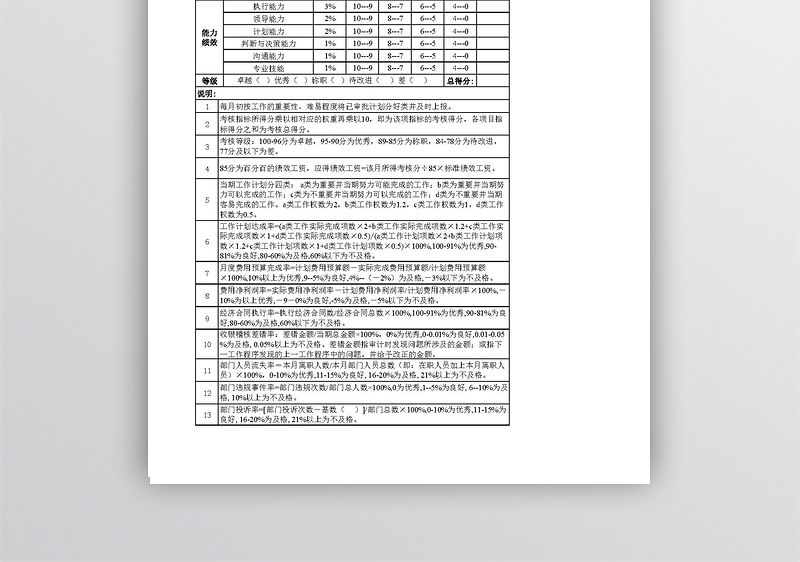 財務部總監經理績效考核表-5聯