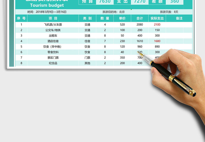 旅游費(fèi)用預(yù)算和支出統(tǒng)計(jì)表 Array