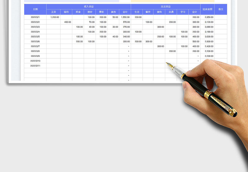 2022家庭個(gè)人每日收入支出記賬表免費(fèi)下載 Array