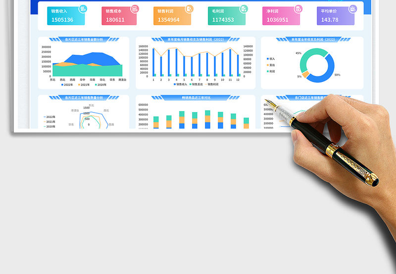 2022年圖表模版-銷售數據總結報告可視化一覽圖報告免費下載包含