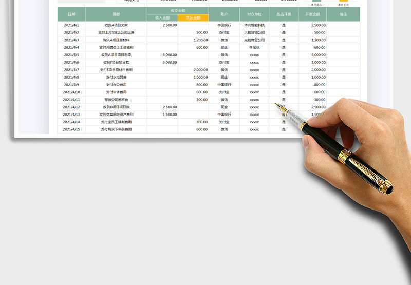 2022收入支出明細表-現金銀行日記賬免費下載包含