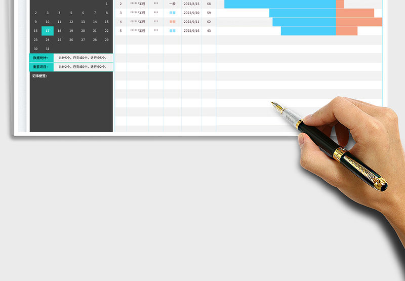 項目工程管理進度甘特圖表Excel模板包含
