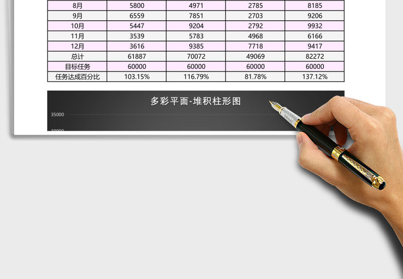 紋理漸變百分比堆積柱形圖excel模板包含