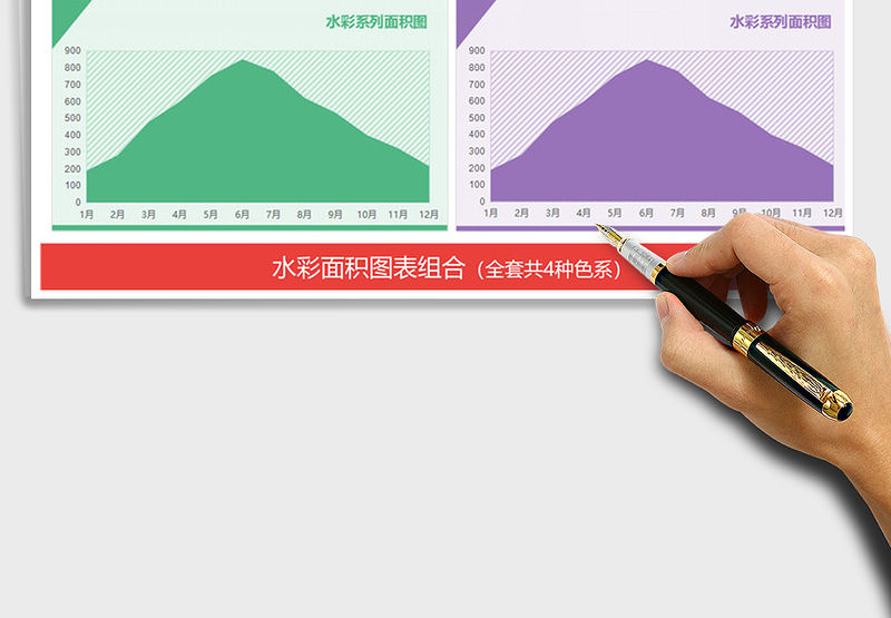2021年商務(wù)簡約清新水彩面積圖表模板