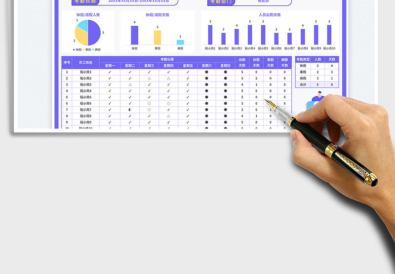 2022部門自動考勤表免費下載包含