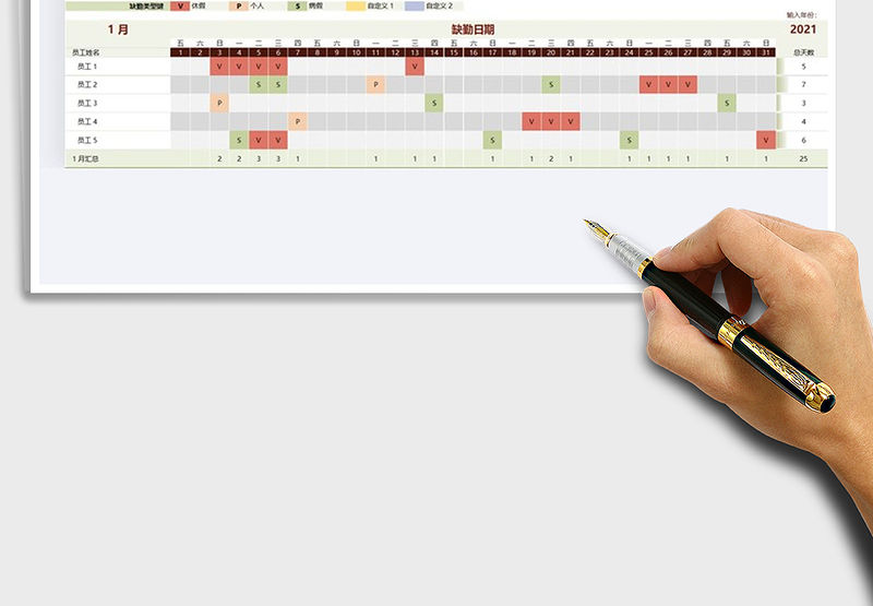 2021年員工考勤表(考勤明細)包含