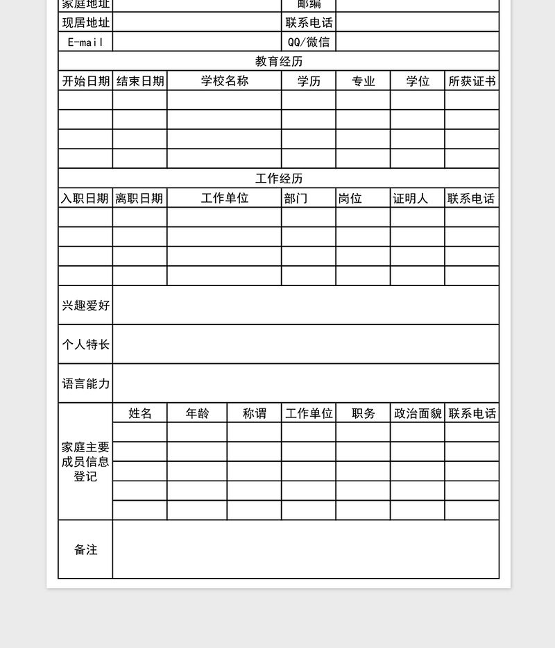 2022教師入職信息登記表免費下載包含