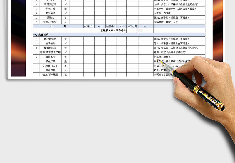 2021年裝修預算表(適合業主個人裝修預算)包含