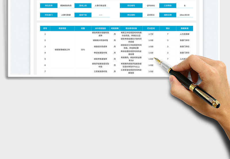 人事薪酬績效專員KPI績效考核表免費下載
