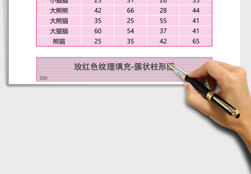 玫紅色紋理填充堆積柱形圖excel模板