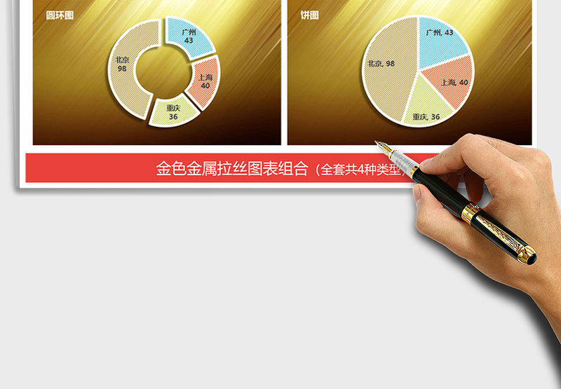 2022年金色金屬拉絲圖表 折線圖柱形圖圓環圖免費下載包含