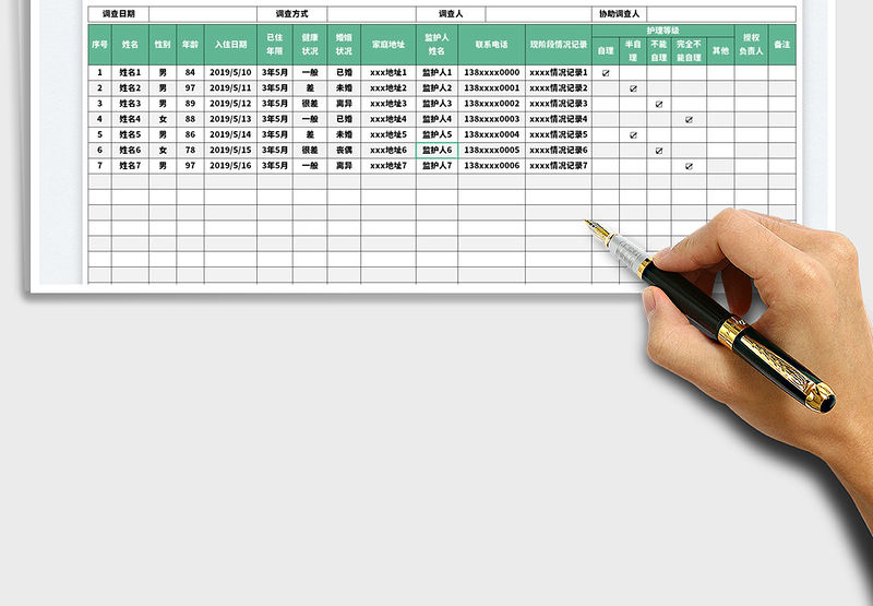 養(yǎng)老院人員自理情況調(diào)查表免費(fèi)下載