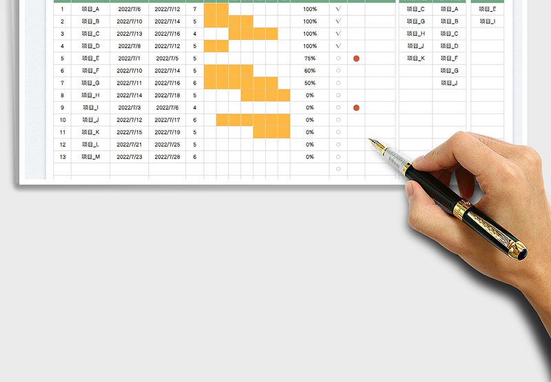 2022項目跟進(jìn)管理明細(xì)表-甘特圖免費下載 Array