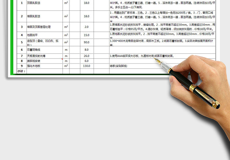 2022年家裝預(yù)算報(bào)價(jià)表免費(fèi)下載