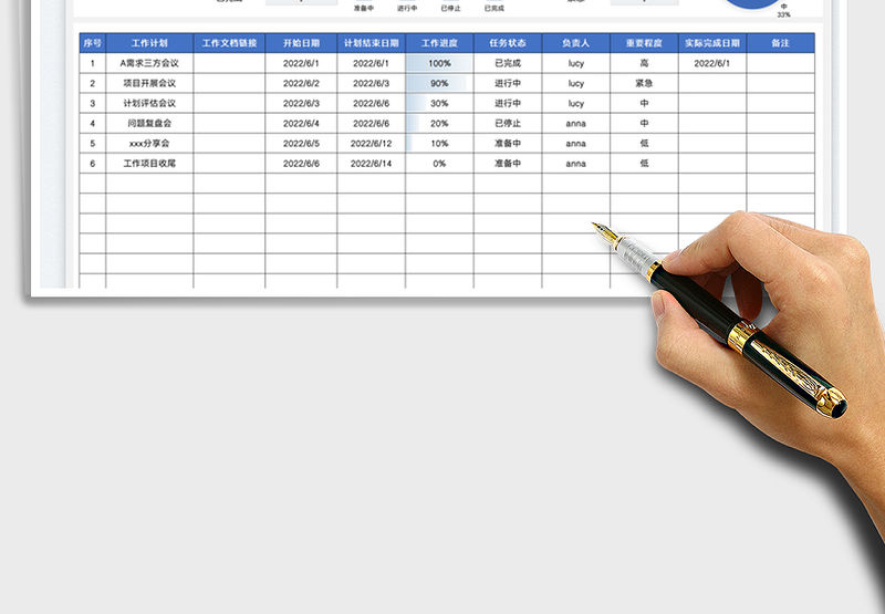2022簡(jiǎn)約藍(lán)白-工作計(jì)劃進(jìn)度表-自動(dòng)統(tǒng)計(jì)免費(fèi)下載 Array
