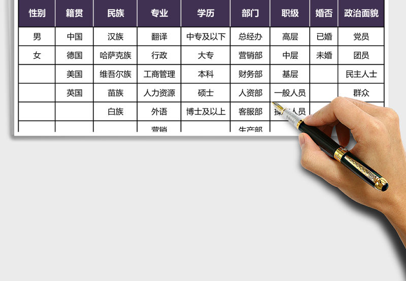 個性定制化員工信息表(自助式下拉菜單)包含