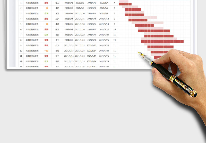 計劃進度表-項目進度甘特圖Excel模板Excel表格模板包含