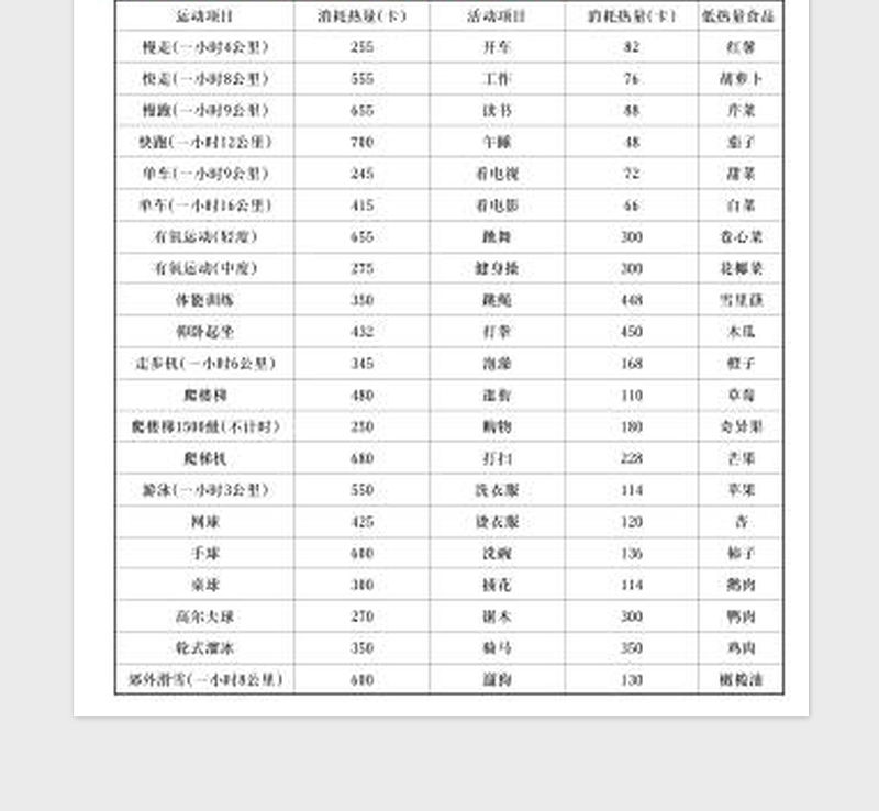 2021年運動健身計劃表包含