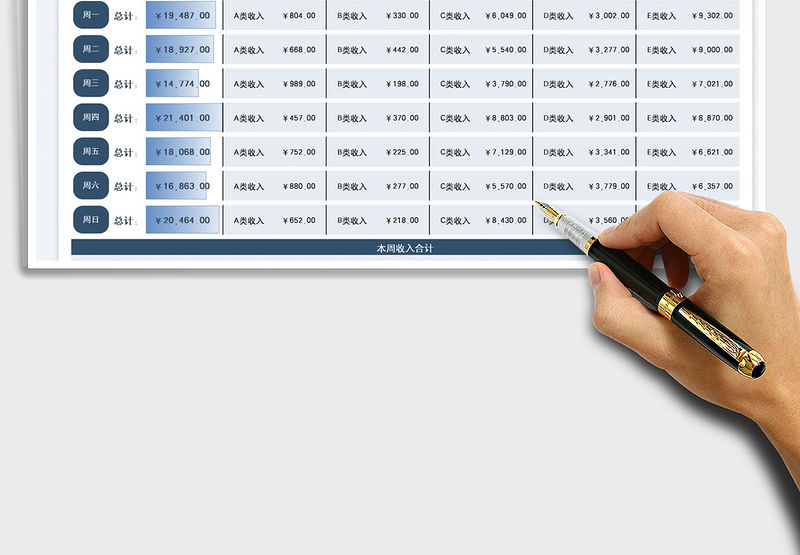 2022財(cái)務(wù)一周收入統(tǒng)計(jì)表免費(fèi)下載