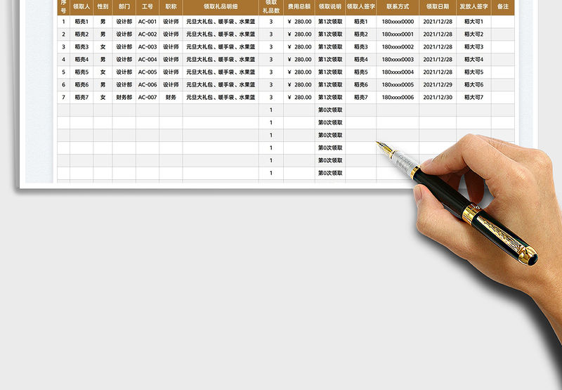 2022元旦禮品領(lǐng)取登記表免費下載 Array
