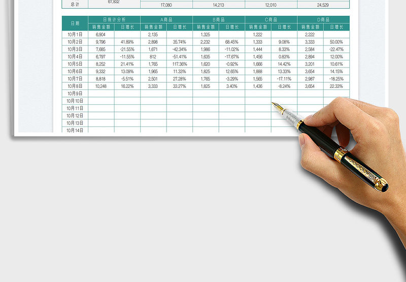 銷售業績分析表雙柱形分析表Excel模板表格包含