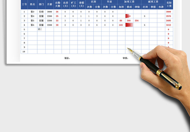 2021年工資績效考核考勤表-智能自動計算包含