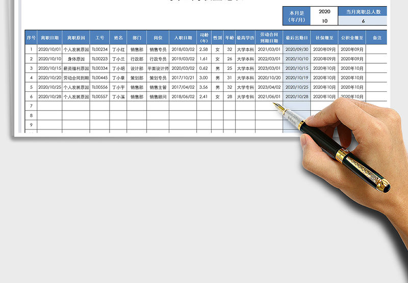 2021年人事行政-員工離職登記表包含