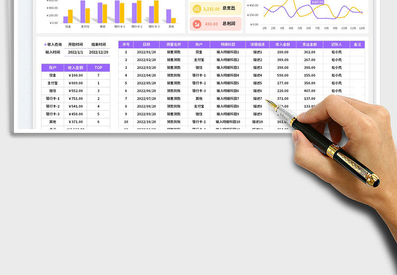 2021年財務收支記賬表(多種功能查詢自動管理)包含