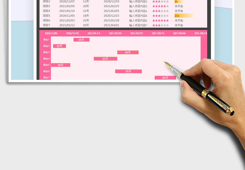2021年工作計劃進度表(甘特圖+自動計算)包含