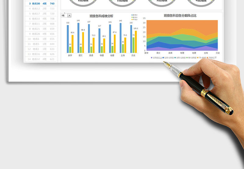 2021年學生考試成績統計分析圖-黃03(自動生成餅圖柱形圖)包含