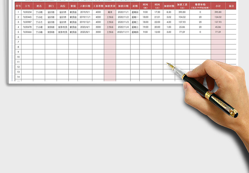 2021年員工加班費加班工資統計表包含