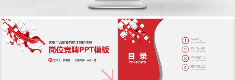 工圖網提供紅色大氣崗位競聘PPT模板供會員免費下載。更多精彩黨課PPT素材,盡在工圖網。