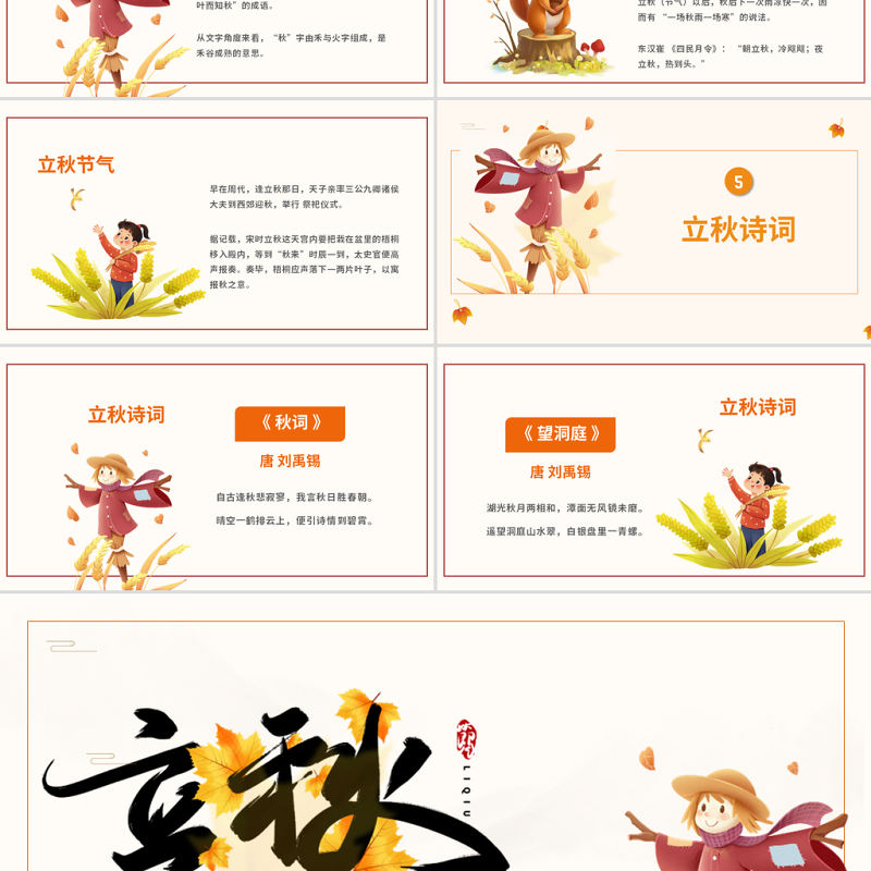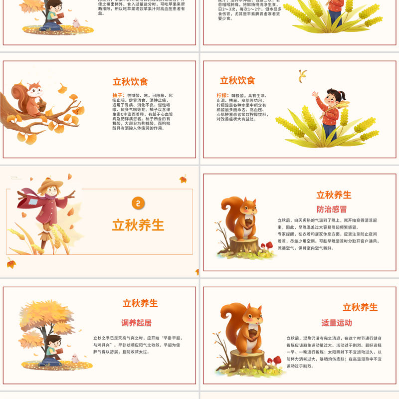 2022立秋節氣PPT插畫卡通風中國傳統二十四節氣之立秋課件模板